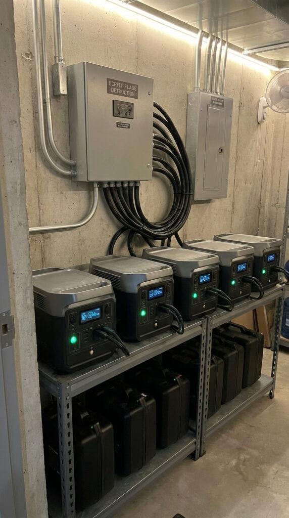 This underground shelter is equipped with a redundant backup power system designed for long-term ous operation without reliance on the external electrical grid. The system is built around multiple modular portable power stations, ensuring flexibility, scalability, and fault tolerance.