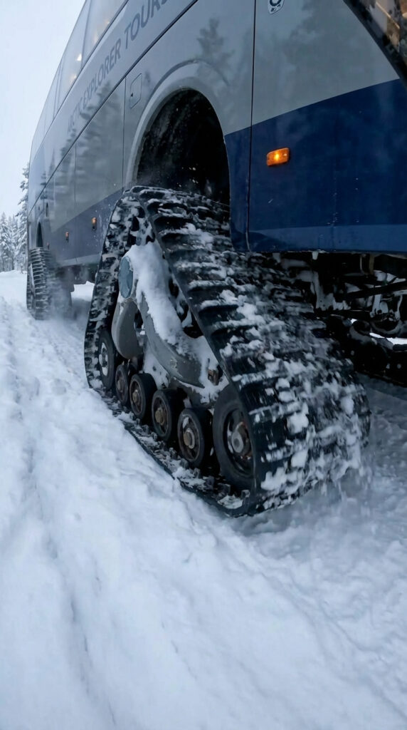 The rubber track assemblies provide exceptional traction on snow, ice, mud, and soft ground while maintaining low ground pressure. This allows stable and controlled movement in deep winter conditions and remote environments where traditional vehicles cannot operate.