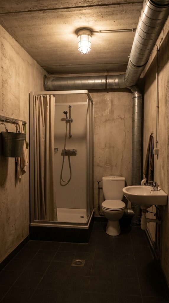 This bathroom is not designed for luxury, but for endurance. It supports daily routine, cleanliness, and physical health — all essential for maintaining stability and morale during long-term underground living.