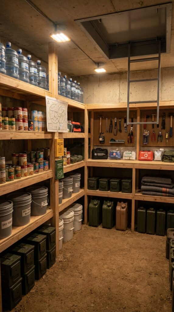 In any serious survival bunker, this space defines preparedness. Quiet, organized, and dependable, it ensures that everything needed to endure is always within reach.