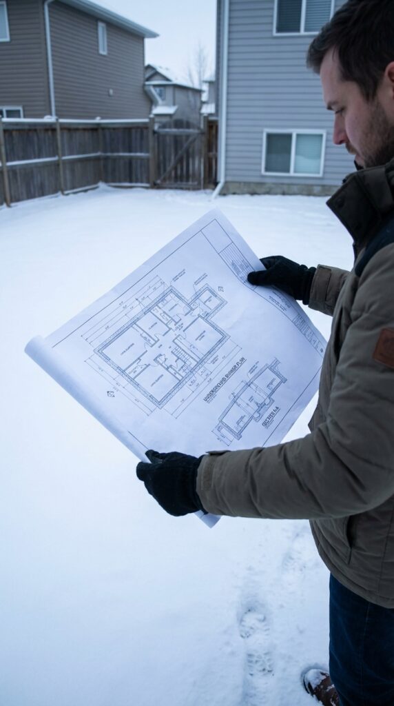 Hidden beneath an ordinary backyard, this concealed underground entrance leads to a fully reinforced survival shelter designed for long-term safety and autonomy. From the surface, it appears as nothing more than a quiet, snow-covered section of the yard — discreet, unremarkable, and intentionally invisible to outsiders.