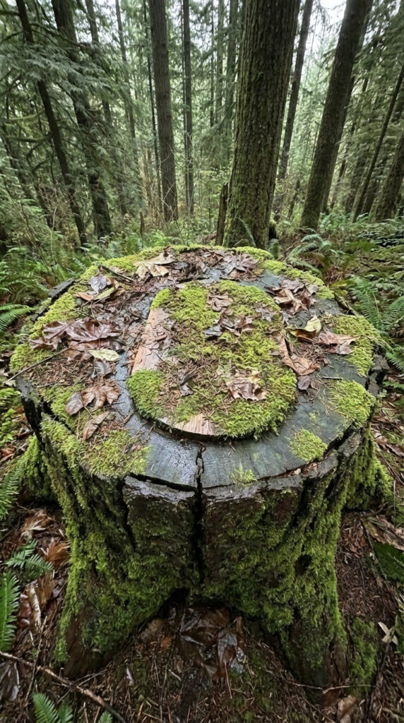 The bunker entrance features a reinforced wooden hatch integrated into the stump’s surface. When closed, it appears identical to an untouched part of the forest floor. Once opened, it reveals a vertical access shaft with a durable metal ladder, providing safe and efficient entry into a secure underground bunker below.