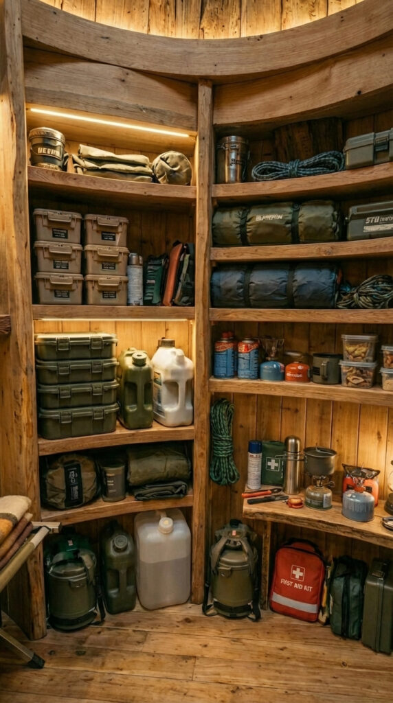 There’s also space for tools, ropes, sleeping gear, and spare clothing. Nothing here is decorative. Every item has a reason to exist. This setup allows me to stay inside for weeks or longer without stress, without rushing, and without feeling unprepared. Knowing these supplies are always ready gives me a level of calm that’s hard to explain until you experience it yourself.