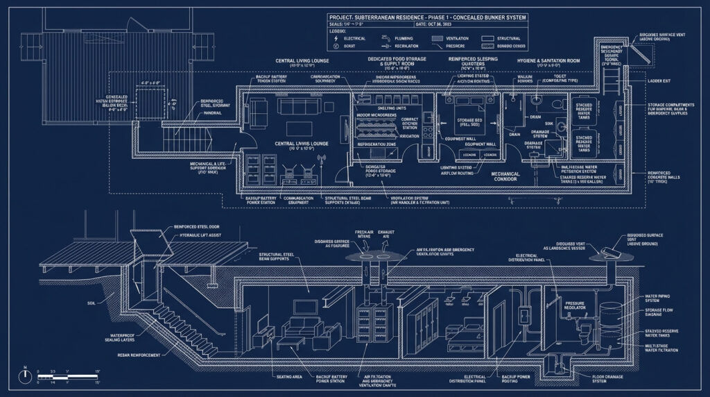Reinforced Underground Sleeping Quarters with Comfort-Focused Design
