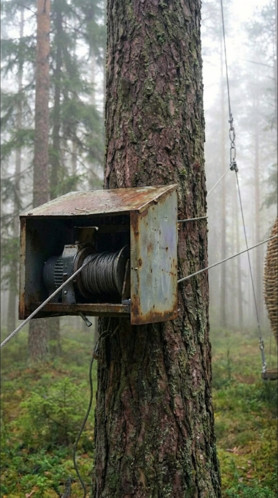 The protective steel housing surrounding the winch motor shields the system from rain, humidity, and forest debris, ensuring long-term durability in harsh wilderness environments. Internal corrosion-resistant components extend the lifespan of the lifting system while minimizing maintenance requirements.