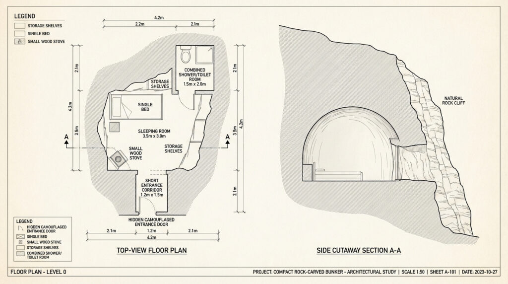 Inside a Hidden Rock Shelter: Compact Underground Living Built Into Solid Stone
