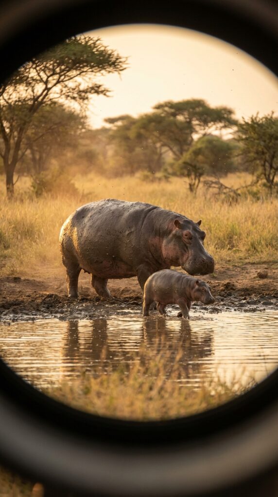 By remaining hidden and silent, observers can spend hours watching the rhythms of the savanna ecosystem unfold naturally. Moments that would normally be impossible to witness up close—such as a mother hippo guiding her calf through shallow water or a giraffe slowly walking through golden grass—can be documented without altering the animals’ natural behavior.