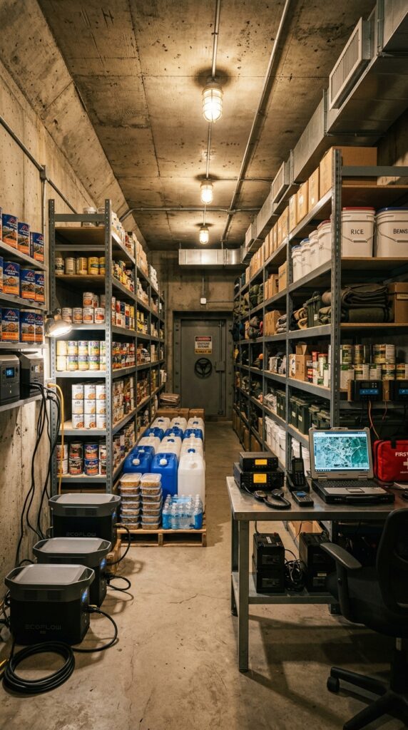 One of the most important sections of any underground bunker is the dedicated supply storage room. This space is designed to hold essential resources that allow occupants to survive comfortably for extended periods without outside access.