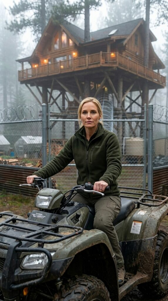 The residents maintain full independence thanks to stored supplies, off-grid electricity, and their own water source. Gardens and greenhouses allow them to grow fresh food, while secure storage rooms hold long-term provisions for emergencies. Transportation around the property is handled with a reliable ATV, allowing quick movement through the forest when needed.