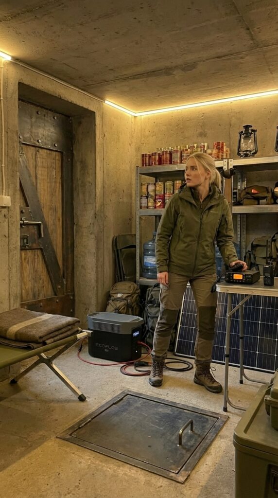 Thanks to this setup, the bunker can maintain lighting, power communication equipment, and keep essential electronics running. Combined with organized food supplies and water storage, the EcoFlow system helps turn this underground shelter into a practical and self-sufficient survival space capable of supporting its occupants during emergency situations.