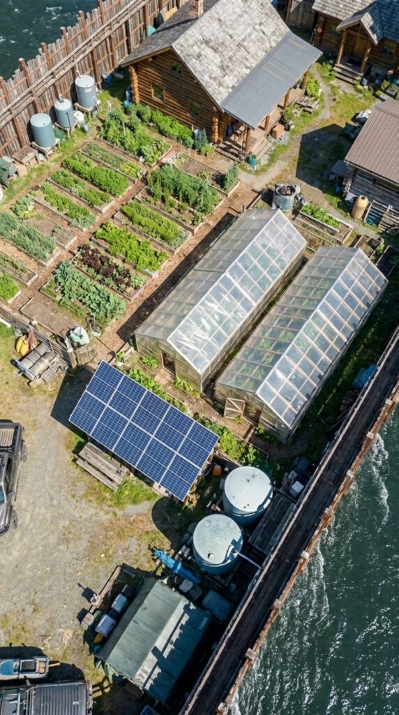Together, the garden and greenhouse form the heart of the island’s self-sufficiency. They allow residents to grow their own food, reduce reliance on outside supplies, and maintain a sustainable lifestyle in the middle of the Alaskan wilderness.