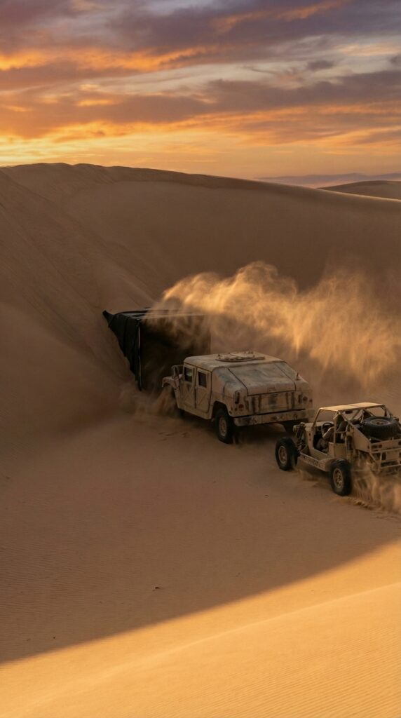 At first glance, the landscape appears untouched. Soft sand dunes stretch in every direction, with only wind patterns and scattered desert plants breaking the surface. But beneath one of these dunes lies a concealed underground entrance designed with an advanced sand camouflage system.