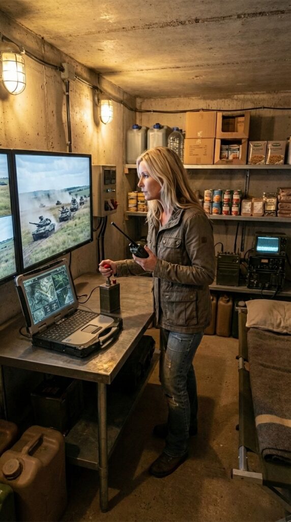The bunker itself is compact but fully equipped — stocked with essential supplies, power systems, and backup equipment to support long-term operation without outside support.