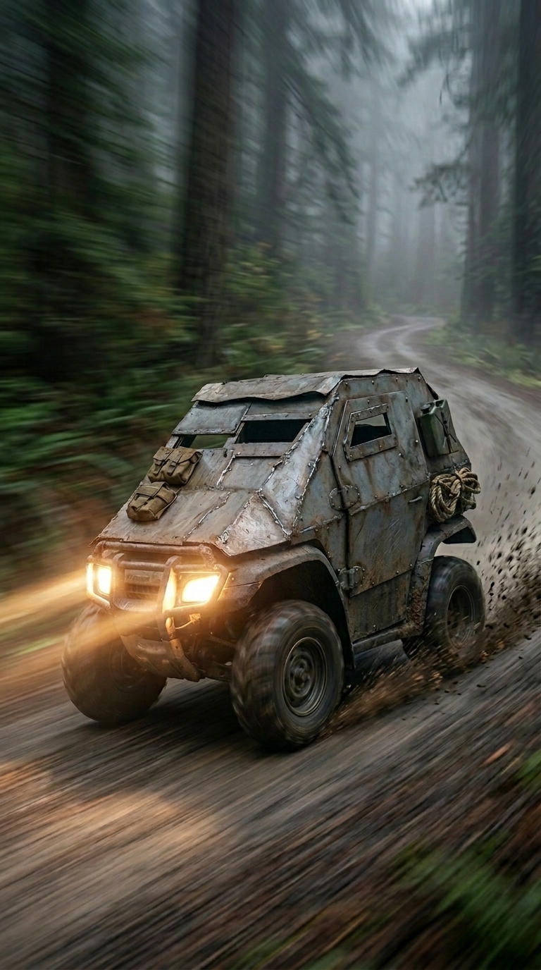 The Armored Off-Road Buggy is a compact yet highly capable tactical vehicle engineered for rapid evacuation in extreme conditions. Built with reinforced metal plating, it provides essential protection while maintaining lightweight agility for high-speed movement through dense forests, mud, and uneven terrain. Its low-profile design enhances stealth, allowing it to navigate narrow paths and remain less visible in natural environments.