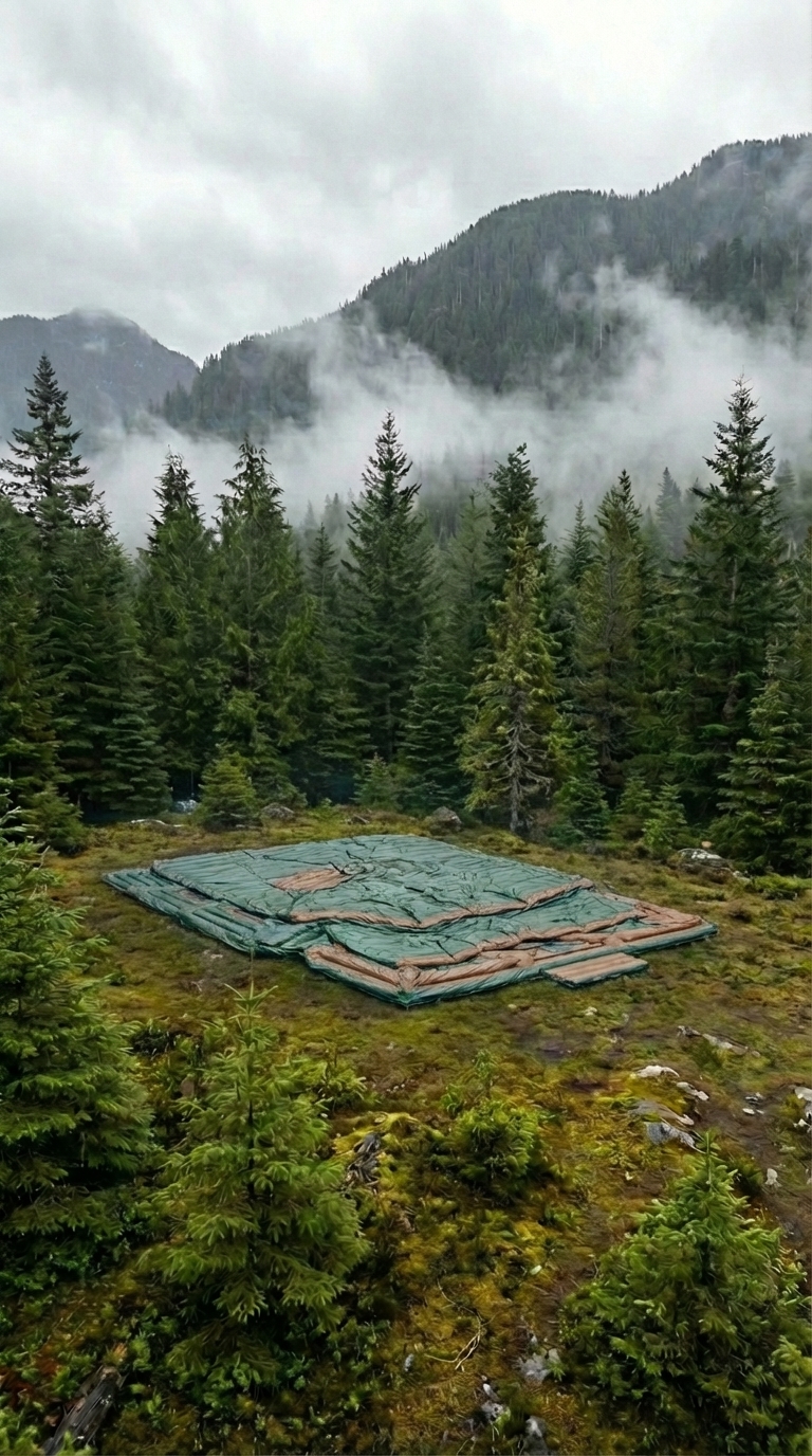 Durability is enhanced through multi-layered materials resistant to punctures and wear, ensuring long-term usability even with repeated deployment cycles. The exterior is designed to blend naturally into forested surroundings, reducing visibility and maintaining a low profile in remote areas.