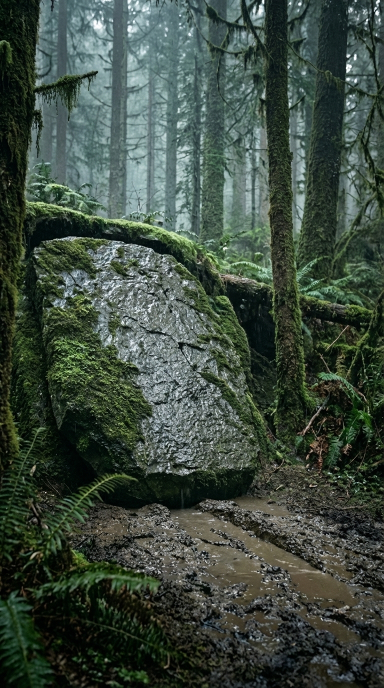 Special attention is given to environmental integration. The surrounding terrain remains visually untouched, with natural elements such as mud, vegetation, and forest debris used to enhance camouflage. Even under close inspection, the entrance remains indistinguishable from a natural rock formation.
