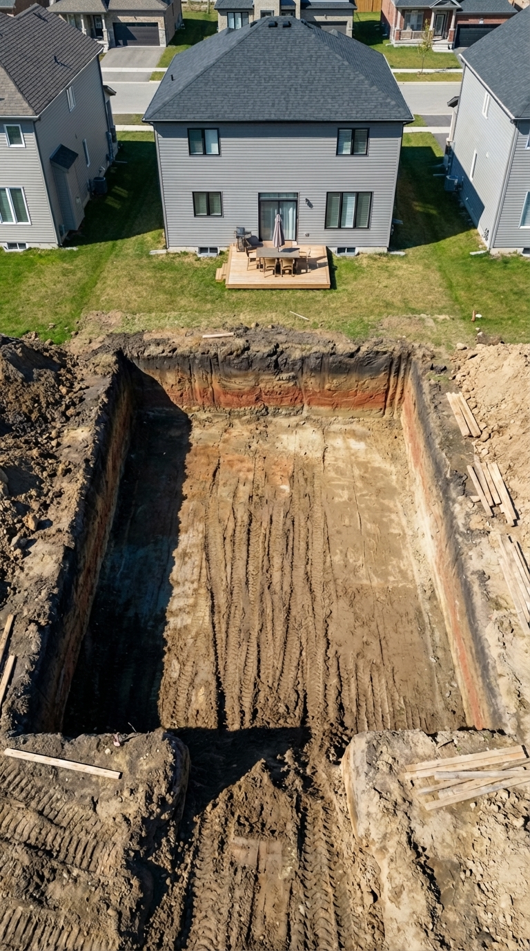 Once the pit is prepared, a drainage layer of gravel is added to prevent water accumulation and reduce long-term moisture risks. In some cases, additional waterproof membranes are installed along the walls to protect the structure from groundwater.
