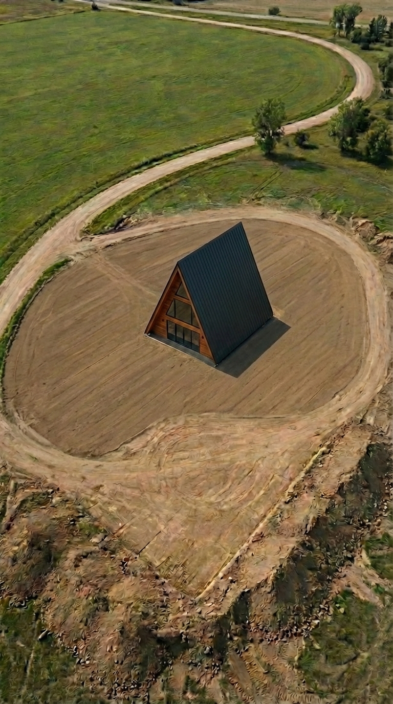 On top of this hidden foundation, a compact modular home was built — simple, modern, and fully functional. The design is intentionally minimalistic, featuring an A-frame structure with solar panels installed on the roof, ensuring energy independence and sustainable daily living.