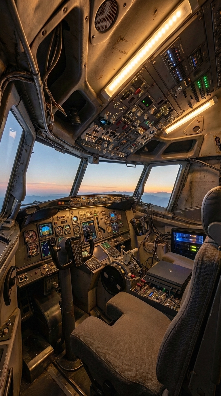 The most distinctive feature of this project is the cockpit. Instead of removing it, the original pilot cabin has been converted into a fully functional flight simulator. The authentic controls, panels, and seating are preserved, while modern screens and systems are integrated to simulate real flight conditions. This space serves both as a control room and a unique operational center, combining practicality with a strong thematic identity.
