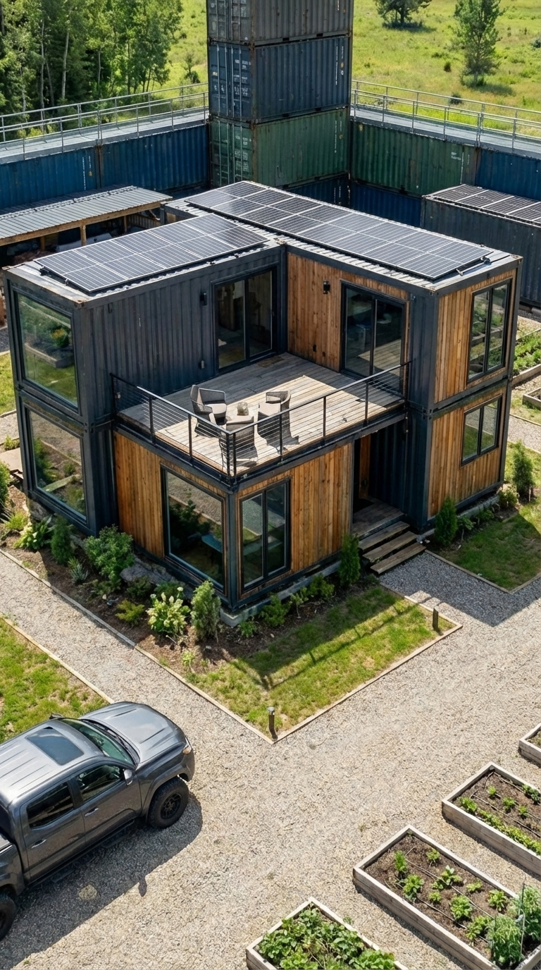 The modular two-story home built from containers is one of the main investments. Including panoramic windows, insulation, interior finishing, plumbing, and electrical systems, the cost usually ranges from $80,000 to $180,000.
