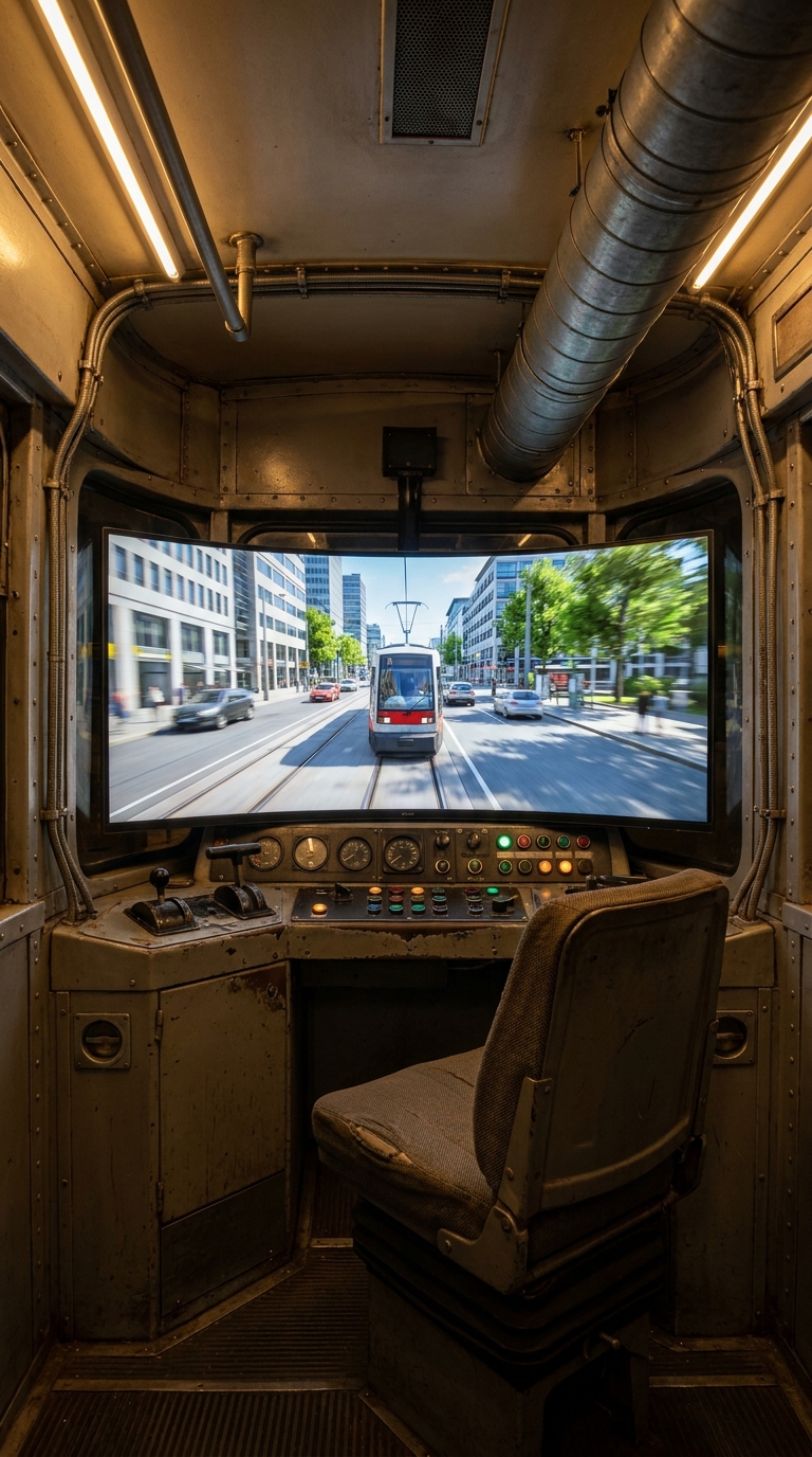 Finally, the original driver cabin has been reimagined into a unique entertainment and simulation hub. A professional-grade tram simulator recreates the experience of driving through a city, displayed on a large panoramic screen. It is both a tribute to the tram’s past and a powerful psychological feature, helping maintain a sense of normal life underground.