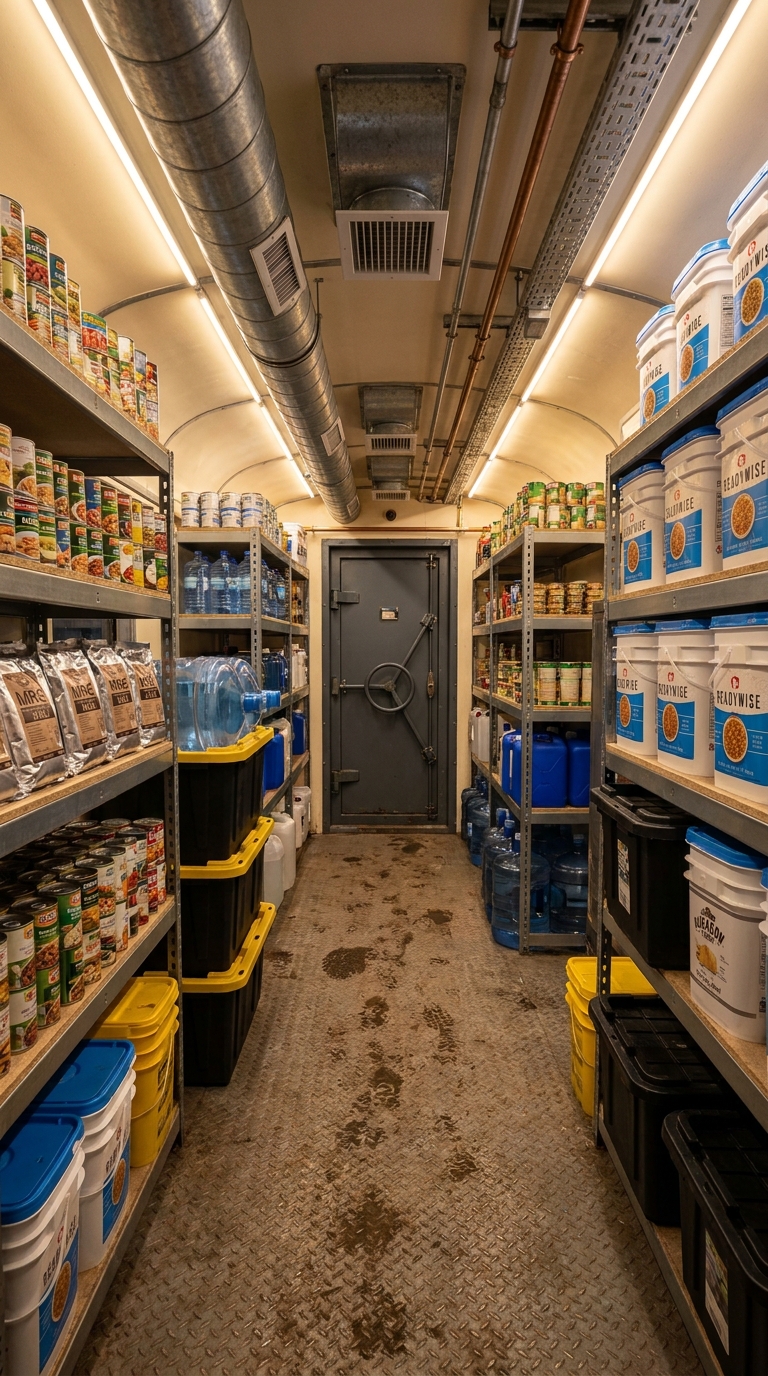 One of the most impressive zones is the supply storage corridor. Shelves are filled with long-term food supplies, water containers, and essential ????? resources. Everything is categorized and easily accessible, ensuring that the bunker can support extended stays without resupply. The heavy reinforced door at the end of the corridor adds an extra layer of protection, separating the living space from the outside world.