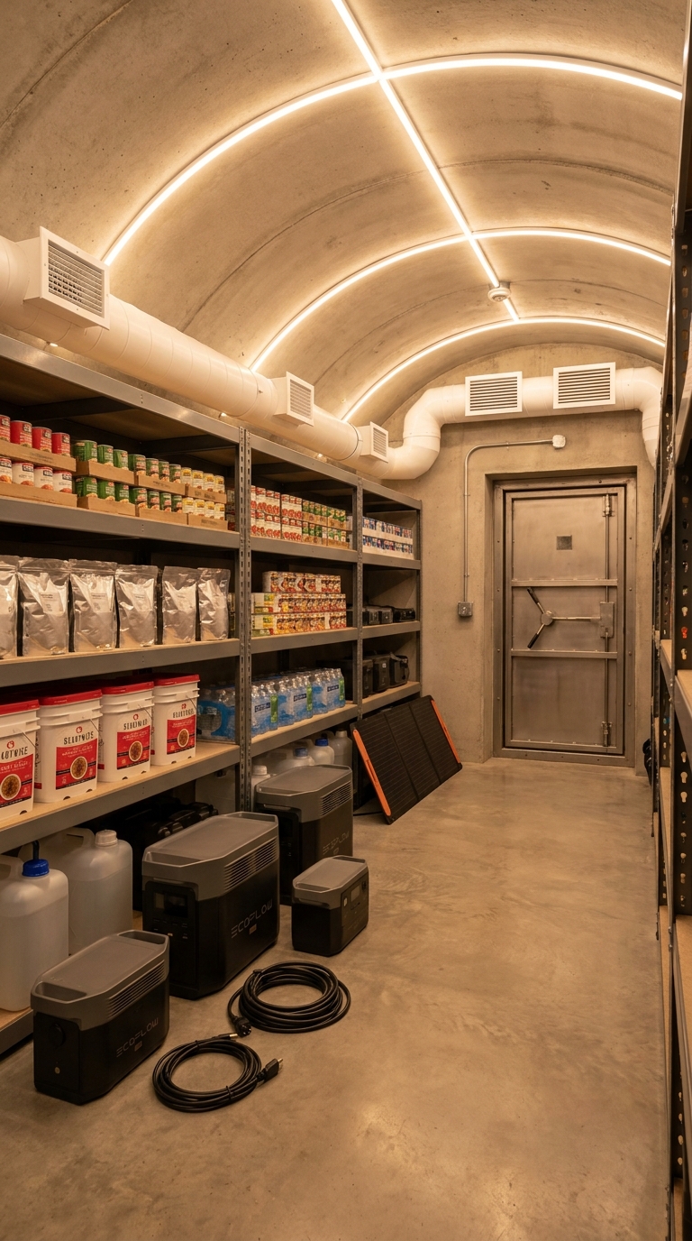 This zone is the foundation of a fully self-sufficient bunker, where smart organization meets essential technology to create a secure and sustainable living environment.