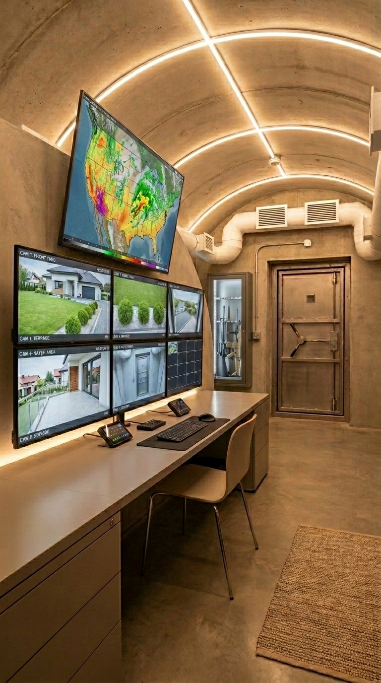 In addition to its core structure, the bunker can be equipped with advanced smart systems that allow remote monitoring and control. From your phone or internal control panel, you can manage lighting, air filtration, temperature, and security access. Motion sensors and hidden cameras around the property can provide real-time awareness of your surroundings without drawing attention from the outside.
