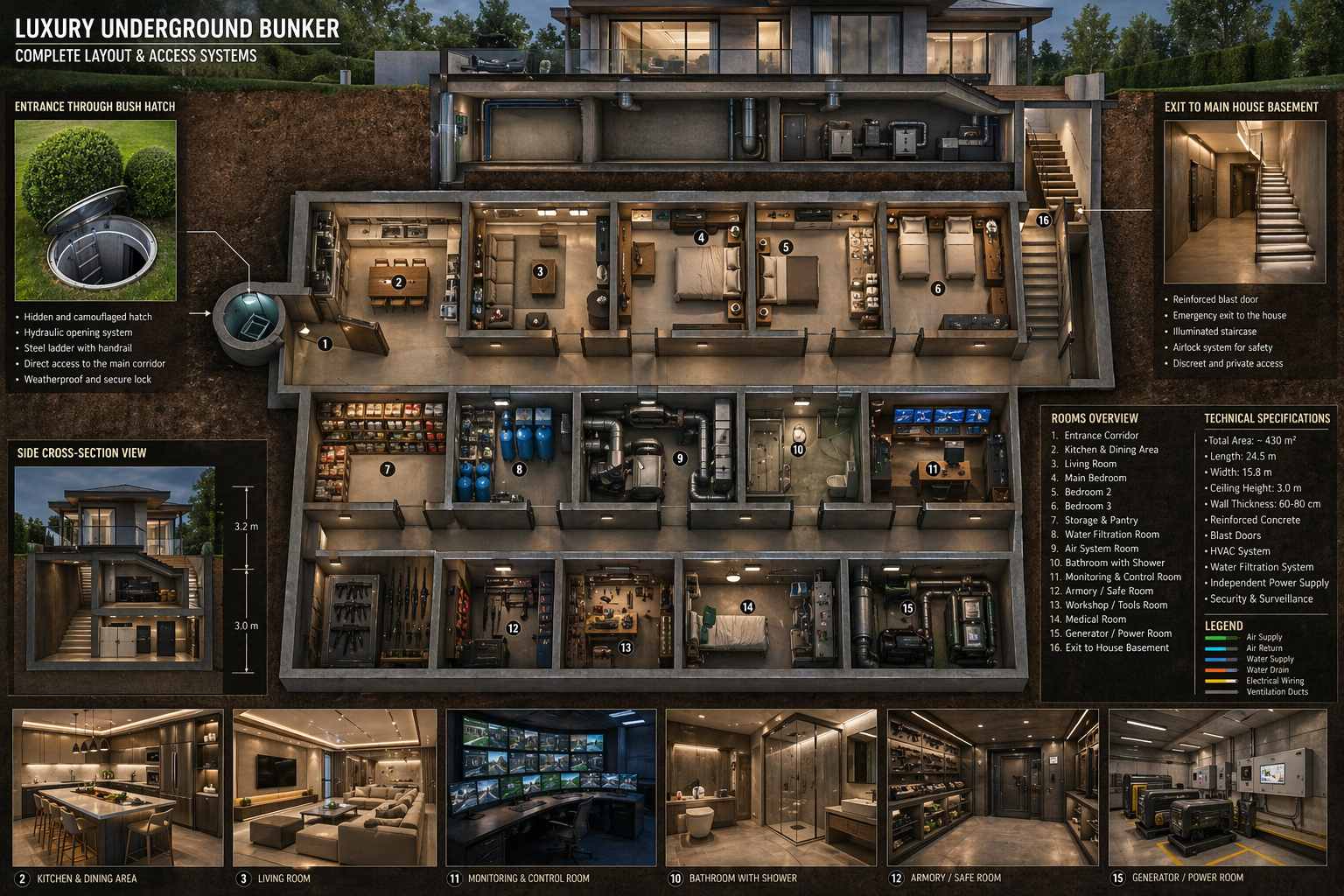This investment reflects more than construction—it represents a self-sufficient, secure, and comfortable underground lifestyle designed to function flawlessly for decades, regardless of external conditions.