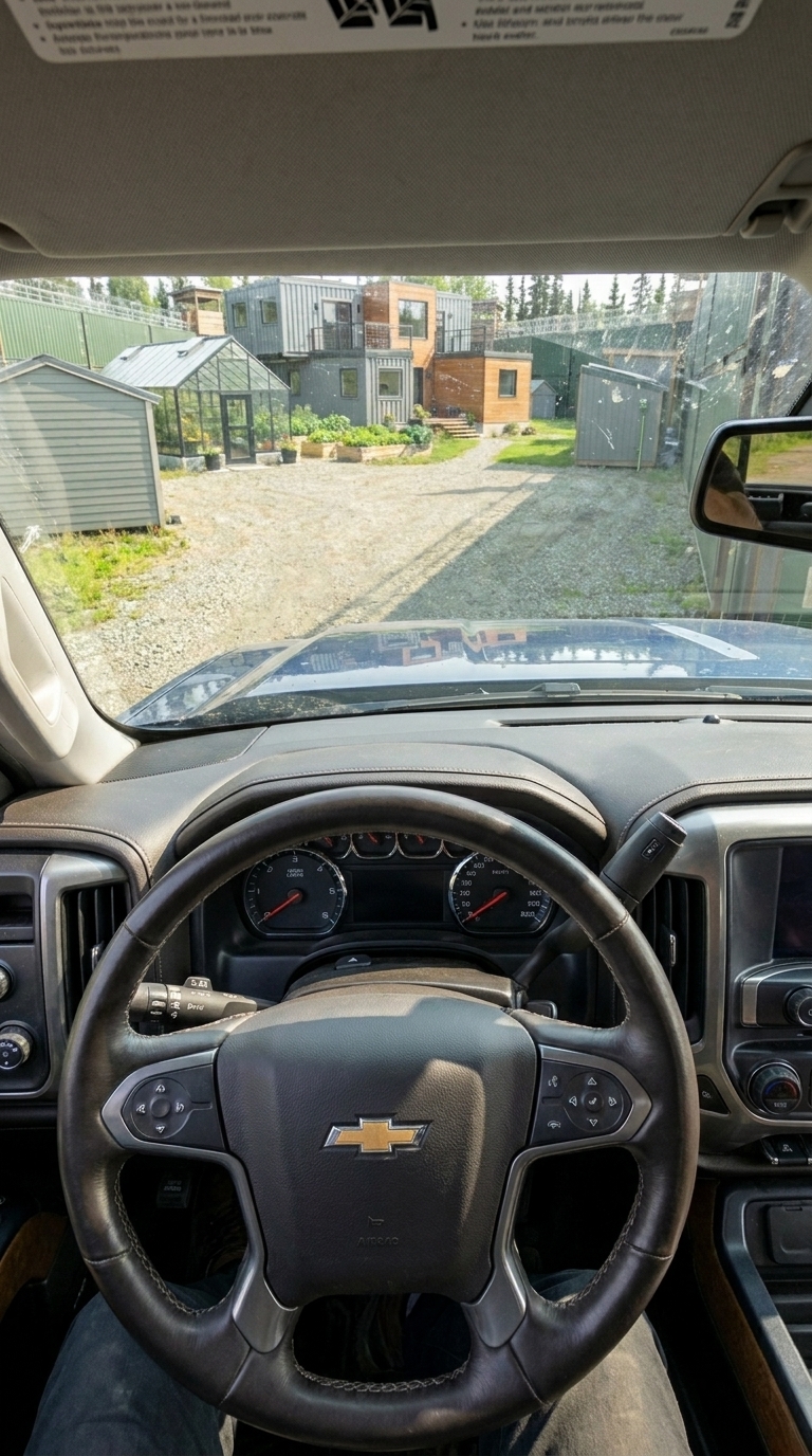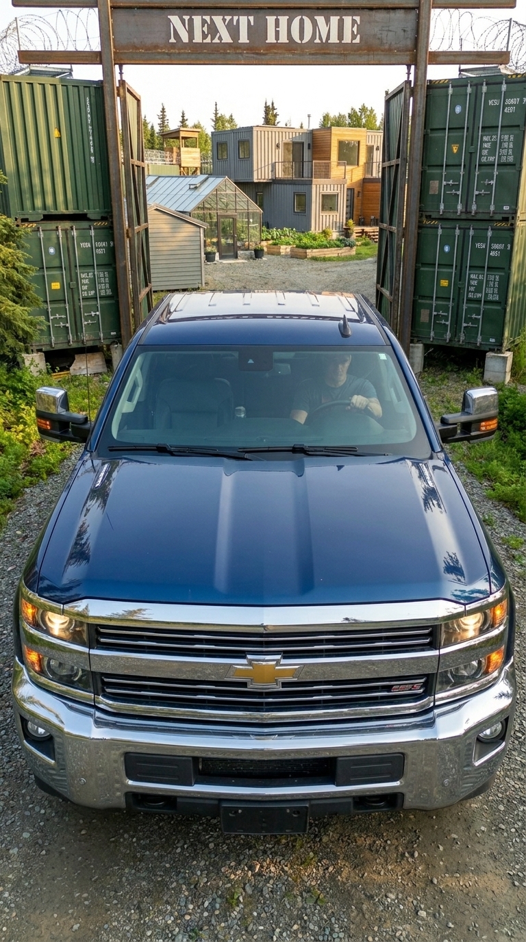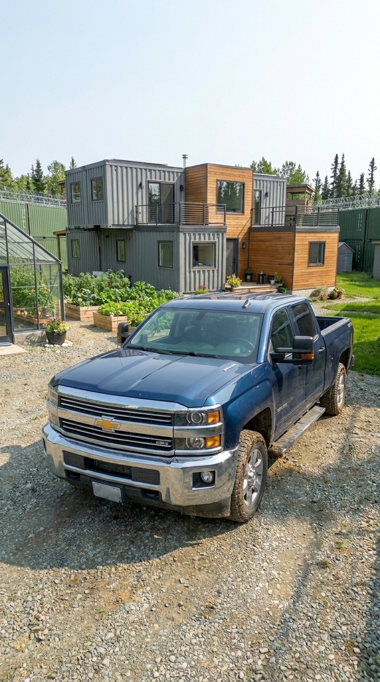 In a remote location like this, a vehicle is not just transportation — it is survival infrastructure. That’s why we chose a powerful all-wheel-drive pickup built to handle harsh terrain, unpredictable weather, and complete off-grid independence. From the moment we enter through the heavy container gates, the truck becomes an essential part of daily life inside the base.