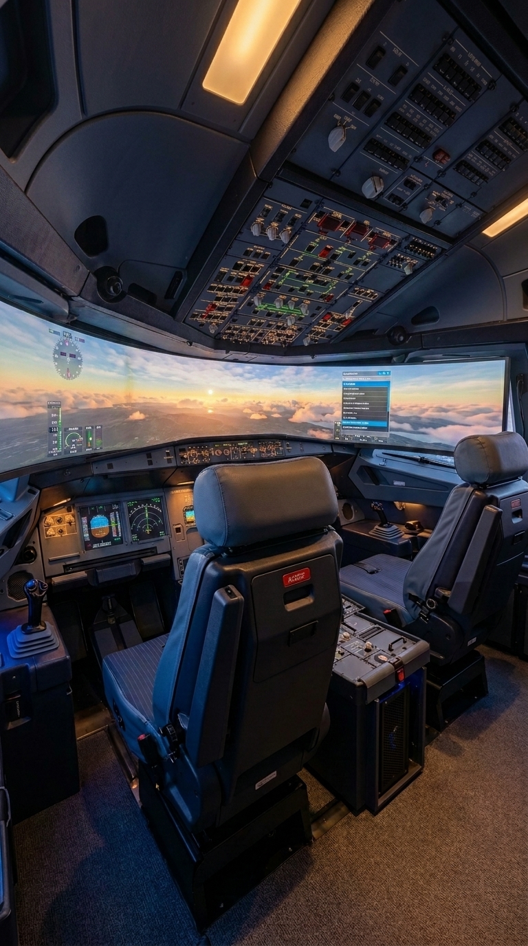 One of the most special parts of the project is the cockpit. Instead of removing it, we transformed it into a fully immersive flight simulator using Microsoft Flight Simulator 2024. It allows us to relive the experience of flying in an incredibly realistic way, right from our home.