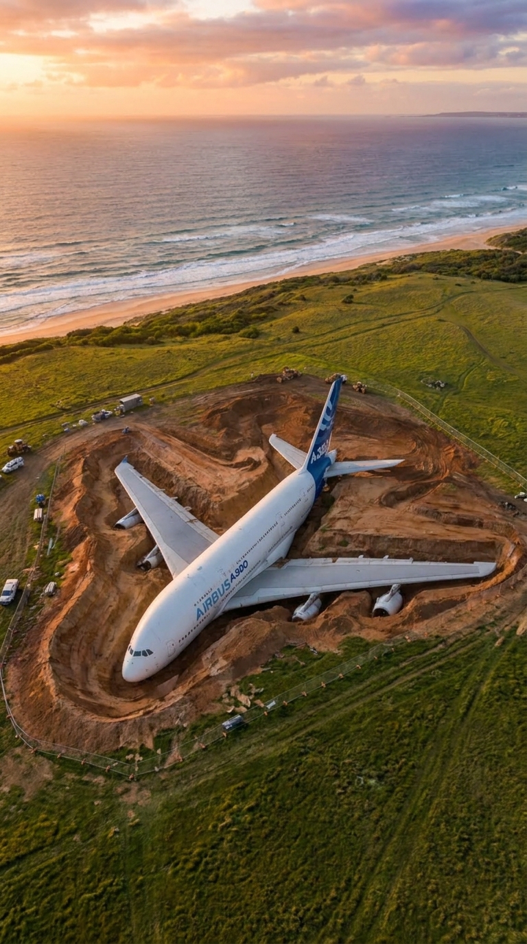 The concept was ambitious from the start. We decided not just to place the aircraft on land, but to partially bury it, integrating it into the landscape. Half of the plane was carefully positioned underground, forming a hidden and reinforced bunker. This lower level was designed for long-term security and storage, with dedicated zones for supplies, water, and essential systems.