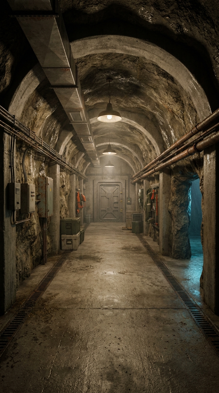 The tunnel itself is reinforced with concrete and steel, designed to withstand pressure, moisture, and long-term use. Integrated ventilation, drainage systems, and emergency lighting allow it to remain fully operational under any conditions. The layout is straight and efficient, enabling fast movement without confusion, even in high-stress situations.