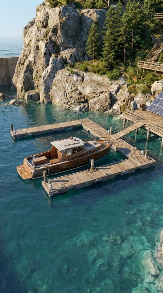 The bay itself also serves as a natural resource zone. Fishing directly from the dock or the yacht provides a consistent source of fresh food, supporting long-term sustainability. Calm waters make maintenance and repairs easier, while the protected environment reduces wear on the vessel over time.