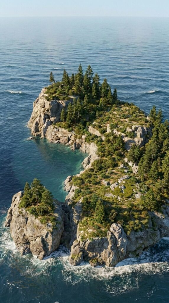 One of the most strategic and visually stunning elements of this autonomous island is the private bay, carefully designed to create a naturally protected harbor within the surrounding ocean. Shielded by the massive concrete barrier and shaped by the island’s rocky terrain, this calm water zone allows safe docking even during rough weather conditions. The water remains clear and stable, making it ideal not only for transportation but also for fishing and daily resource access.